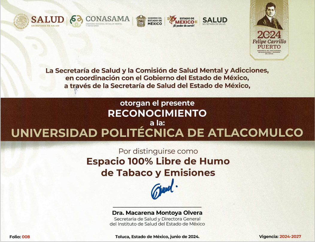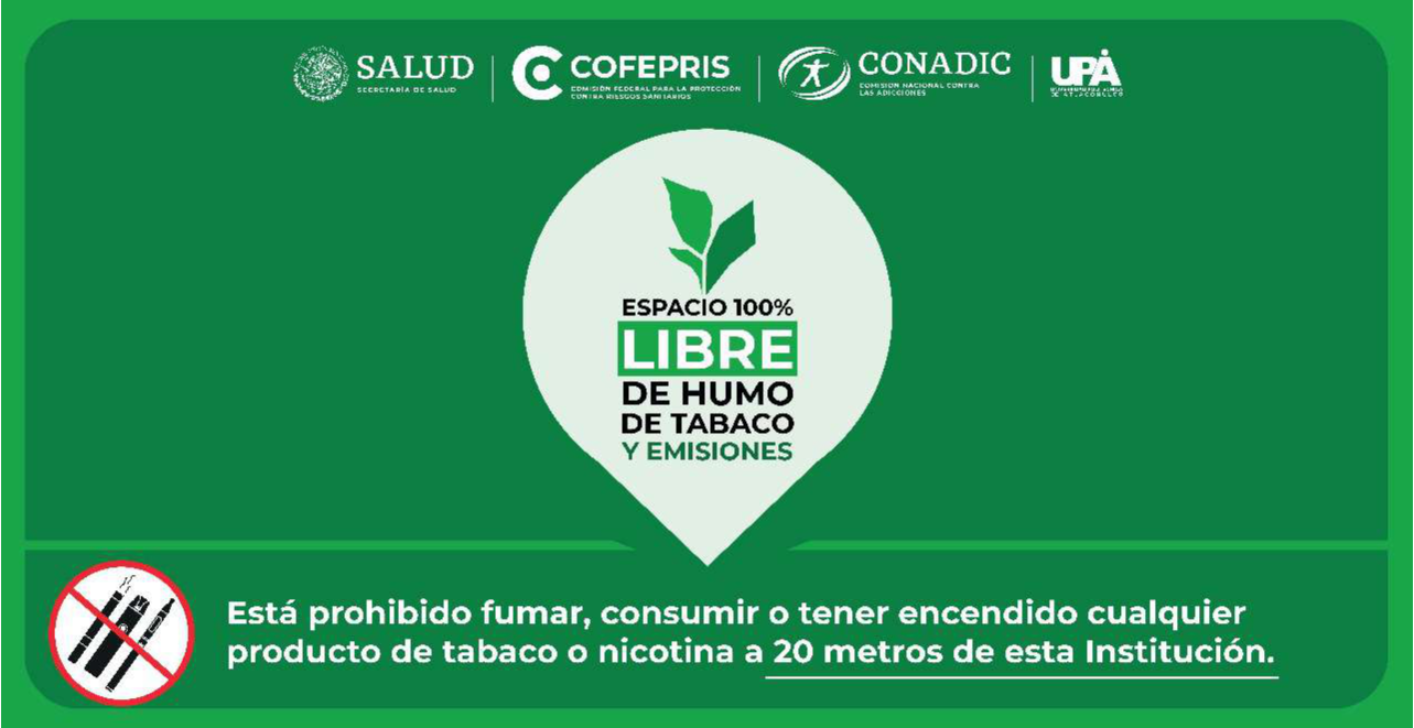 En su compromiso por promover el bienestar integral de su comunidad, la Universidad Politécnica de Atlacomulco (UPA) ha puesto en marcha la iniciativa "Espacio 100% Libres de Humo de Tabaco”. Este programa busca garantizar un entorno seguro y saludable para todos los estudiantes, docentes y colaboradores, protegiendo tanto a fumadores como a no fumadores. ¿Cómo beneficia esta iniciativa a la comunidad universitaria?